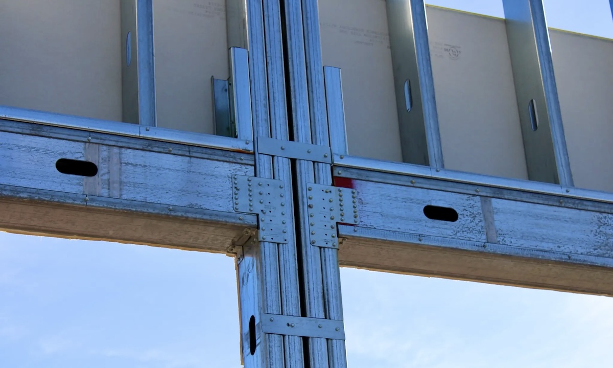 CFS X-braced walls were the primary lateral-resisting system. For all floor joists and roof rafters, 14-inch-deep, Super Stud proprietary joist framing, with large punch outs, were used. Such CFS members helped reduce the overall building weight.